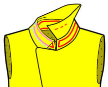 えりの縫い代を全部えりの中に入れてください。 見返しの上の縫い代も中に入れてください。 |