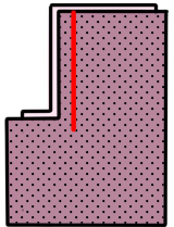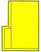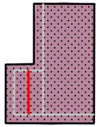 アイロンで折り目をつけてください。 赤い部分を折ってください。 |