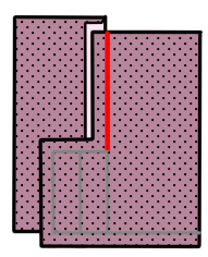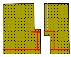 表地 折り目を広げてください。 表地通しを内側が表になるように重ねてください。 表地のスリットの上を縫ってください。 |