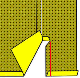 スリットの縫い代をアイロンで付けた折り目通りに裏へ折ってください。 | |