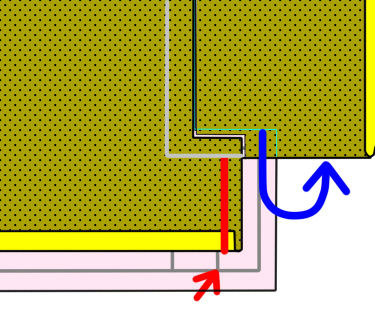 表地の長いほうに、裏地の長い方のスリットを縫ってください。