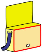 袋の正面部分にもマジックテープかスナップボタンを付けてください。 |
