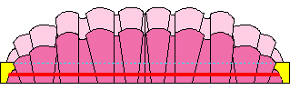 折り目どおりにフリルを広げます | |