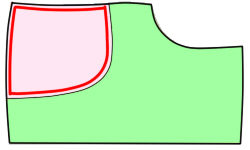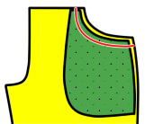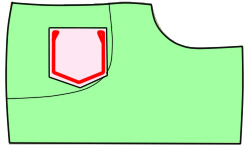 ポケットを裏に回し、ポケット口の端から0.2〜0.5cmの所を縫う。 | |
