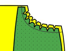 縫い代に切り込みを入れる。 縫い目を切らないために切り込みは0.1cm手前まで 入れないとポケット口が引きつるよ |