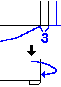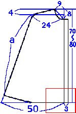 上の製図の赤い部分を拡大した所。 3cmの所に接着芯を貼り、裏に折り返す。 |