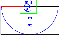 | 上の黄緑の部分を拡大した所。 襟首の切り落とし部分から1cm外側を測る。(後NH(ネックホール)+前NHに相当) |
