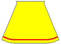 フリルを縫い付けてください。 フリルを下向きにしてください。 縫い代はそで側に折って下さい。 縫い目から3〜5mmの所を縫ってください (この時点ですでにわっかになっていますが見やすいように平たい状態で描いています) |