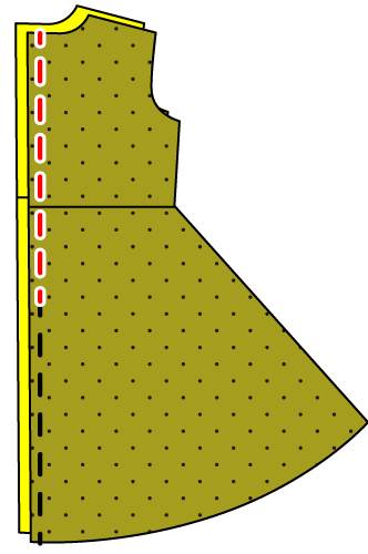 前上半身(前見頃)と前スカートを表同士が内側になるように重ねる。