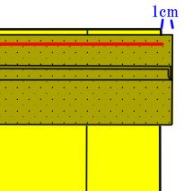 持ち出しを重ねてください。 折り山ではない方を端に合わせてください。 端から0.8cm位のところを縫ってください。 |