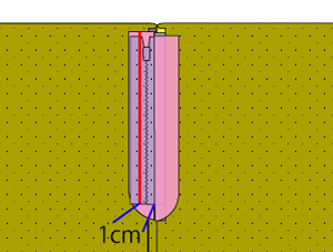 裏地と表地を合わせて上から5mmのところを縫ってください | |