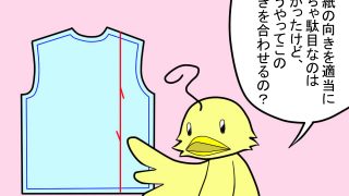出来るだけ簡単にまっすぐ型紙を置く方法です。 型紙に書かれた布の向きの説明はこちら ...