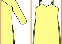 キャミソールのワンピースの製図です。 この3Dモデルの服の丈130cmすその幅(平らに置いて測った...