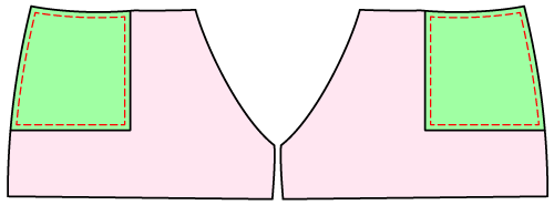 表を上にした前身頃の上に裏を上にしたポケットを重ね縫う。