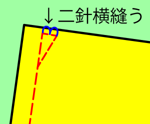 横に縫う部分を作ると辺で端を支えるので裂けにくくなります。